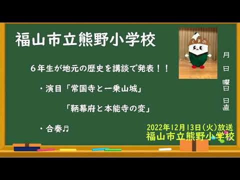 出演校:福山市立熊野小学校 出演者:6年生の皆さん 福山市立熊野小学校の6年生が発表します。 地域の歴史を学んだ児童が、「 ...